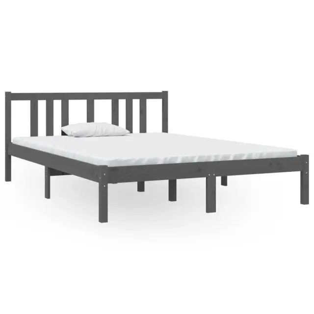 Posteljni okvir - Dvoposteljna postelja - Zakonska postelja siv iz trdnega lesa 135x190 cm-J15068
