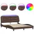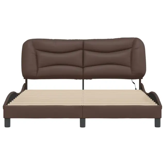 Zagotovite si boljši spanec s tem posteljnim okvirjem z LED lučkami! Je prijeten dodatek za vsako spalnico. Trpežno umetno usnje: Vrhunsko umetno usnje je zelo vzdržljiv material. Je odporno na madeže, zato ga lahko preprosto čistite z vlažno krpo. Gladka površina mu prav tako daje razkošen videz in lepoto pravega usnja.Letvice iz vezanega lesa: Letvice iz vezanega lesa omogočajo dobro porazdelitev teže in zagotavljajo, da vzmetnica ostane na mestu ob vsakem zasuku in obračanju med spanjem.Udobna opora: To vzglavje za posteljo vam zagotavlja odlično oporo za hrbet, ko sedite na postelji in berete ali gledate filme.Barvit LED trak: Vnesite igrivost v temo z barvitimi LED lučkami! Kljuke in zanke na hrbtni strani vzglavja lahko uporabite za pritrditev LED lučk.Valovita stranica: Valoviti videz posteljnega okvirja je eleganten in prefinjen. Dekorju v vašem domu dodaja sodoben in eleganten pridih ter tako postane osrednja točka spalnice. Dobro je vedeti:Vzmetnica ni priložena tej postelji. Ponujamo različno izbiro ležišč. V naši trgovini si lahko ogledate ustrezne vzmetnice.Izdelek ima priključek USB, ki zahteva certificiran vir napajanja 5 V USB (ni priložen).Posteljni okvir:Barva: RjavaMaterial: Umetno usnje (75 % polivinilklorid, 5 % bombaž, 20 % poliester), kovina, trdna borovina, vezan lesCelotne dimenzije: 218 x 165 x 74,5 cm (D x Š x V)Velikost primerne vzmetnice: 160 x 200 cm (Š x D) (vzmetnica ni priložena)Potrebno sestavljanje: DaOblazinjeno vzglavje:Barva: RjavaMaterial: Umetno usnje (75 % polivinilklorid, 5 % bombaž, 20 % poliester)Material polnila: PP vlaknaDimenzije: 170 x 15 x 48 cm (D x Š x V)Primerna širina vzmetnice: 160 cmLED trak:Dolžina: 55 cmNapetost: DC 5 VDolžina kabla USB: 140 cmDolžina električnega kabla: 30 cmIP ocena: IP65Paket vsebuje:1 x Posteljni okvir1 x Oblazinjeno vzglavje2 x LED trak Ta izdelek se napaja z DC 5 V, vendar certificirani 5 V vir napajanja USB ni priložen. Višja napetost lahko povzroči pregrevanje in poškoduje napravo ter povzroči potencialno nevarnost pregrevanja in požara.