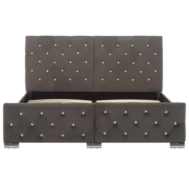 Ta klasičen posteljni okvir bo postal ključna točka vaše spalnice. Ta posteljni okvir s preprostim in elegantnim dizajnom bo dekorju v vaši spalnici dodal pridih elegance. Ta posteljni okvir iz lesa in jekla je zelo močan in vzdržljiv. Kovinske noge postelji dodajajo vzdržljivost. Postelja je oblazinjena v trpežen žamet, izžareva privlačen videz in je enostavna za čiščenje. Ta posteljni okvir je primeren za vzmetnico 140 x 200 cm. Upoštevajte, da paket vsebuje samo posteljni okvir; vzmetnica ni priložena. Postelja je preprosta za sestavo. V naši trgovini si lahko ogledate ujemajočo vzmetnico.Barva: SivaMaterial: Žamet (100 % poliester), vezani les, jekloCelotne dimenzije: 211 x 146 x 87 cm (D x Š x V)Velikost primerne vzmetnice: 140 x 200 cm (Š x D) (vzmetnica ni priložena)Spalna višina, merjena od tal: 27,5 cmPotrebno sestavljanje: Da