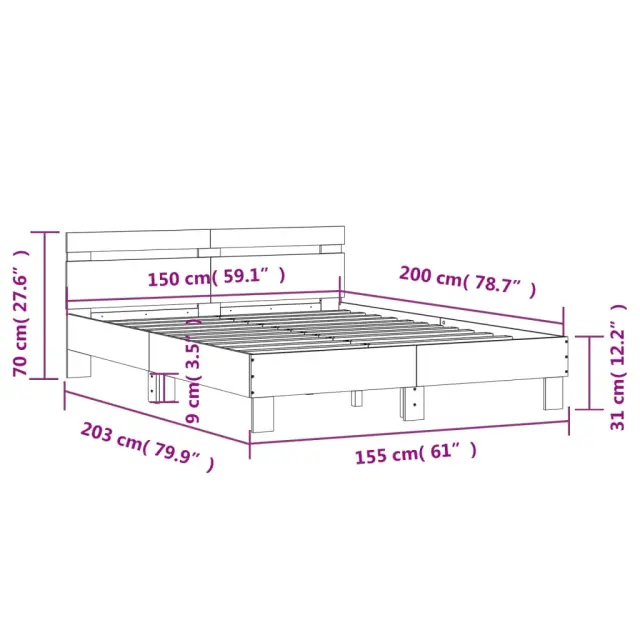 Zagotovite si boljši spanec s tem posteljnim okvirjem! Je prijeten dodatek za vsako spalnico. Vzdržljiv material: Inženirski les se ponaša z izjemno kakovostjo, gladko površino ter močjo, stabilnostjo in odpornostjo na vlago.Odlična opora: Posteljno vzglavje vam zagotavlja odlično oporo za hrbet, medtem ko sedite v postelji in berete ali gledate televizijo.Trdne letvice: Letvice iz vezanega lesa omogočajo dobro porazdelitev teže in zagotavljajo, da vzmetnica ostane na mestu ob vsakem zasuku in obračanju med spanjem. Dobro je vedeti:Vzmetnica ni priložena tej postelji. Ponujamo različno izbiro ležišč. V naši trgovini si lahko ogledate ustrezne vzmetnice.Barva: Rjav hrastMaterial posteljnega okvirja: Inženirski lesMaterial letvic: Vezan lesCelotne dimenzije: 203 x 155 x 70 cm (D x Š x V)Velikost primerne vzmetnice: 150 x 200 cm (Š x D) (vzmetnica ni priložena)Potrebno sestavljanje: Da