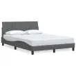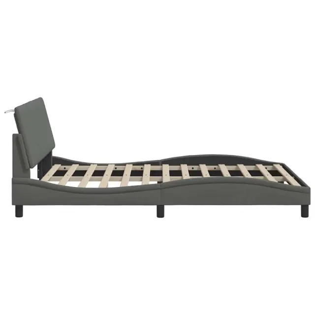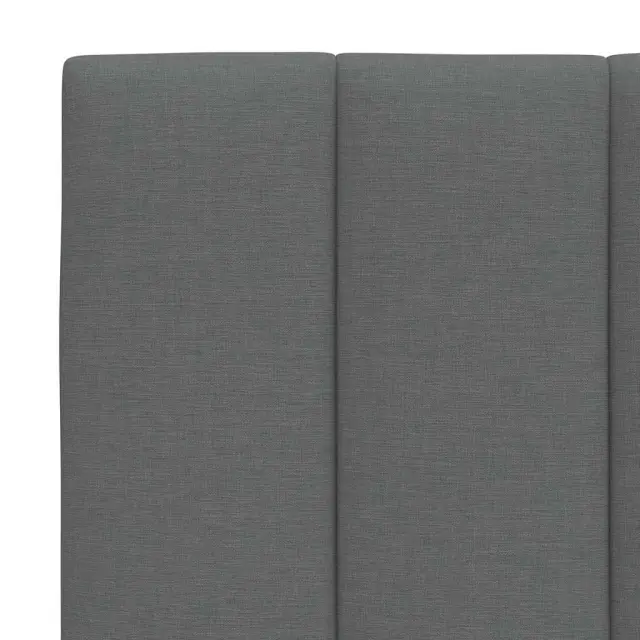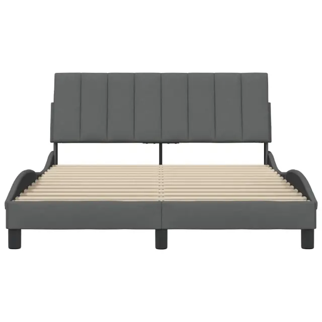 Zagotovite si boljši spanec s tem posteljnim okvirjem! Je prijeten dodatek za vsako spalnico. Mehak in trpežen material: Tkanina iz poliestra ponuja kombinacijo mehkobe, zračnosti in trpežnosti ter vam zagotavlja popolno udobje in prijetnost.Letvice za optimalno podporo: Ta posteljni okvir je opremljen z letvicami, ki zagotavljajo osnovno podporo in zračnost vašega ležišča.Vsestransko vzglavje: Ta posteljni okvir je opremljen z vzglavjem, ki zagotavlja odlično oporo hrbtu, ko sedite v postelji in berete ali gledate televizijo, hkrati pa služi tudi kot dekorativni element.Priročna zasnova: Vzglavna stranica ima zadrgo za preprosto namestitev, pripenjala na zadnji strani pa se lahko uporabijo za pritrditev LED lučk.Valovita stranica: Valoviti videz posteljnega okvirja je eleganten in prefinjen. Dekorju v vašem domu dodaja sodoben in eleganten pridih ter tako postane osrednja točka spalnice. Dobro je vedeti:Vzmetnica ni priložena tej postelji. Ponujamo različno izbiro ležišč. V naši trgovini si lahko ogledate ustrezne vzmetnice.Posteljni okvir:Barva: Temno sivaMaterial: Tkanina (100 % poliester), kovina, vezan les, inženirski lesCelotne dimenzije: 208 x 145 x 74,5 cm (D x Š x V)Velikost primerne vzmetnice: 140 x 190 cm (Š x D) (vzmetnica ni priložena)Oblazinjeno vzglavje:Barva: Temno sivaMaterial: Blago (100 % poliester)Material polnila: PP vlaknaDimenzije: 140 x 3 x 45 cm (D x Š x V)Paket vsebuje:1 x Posteljni okvir1 x Oblazinjeno vzglavje