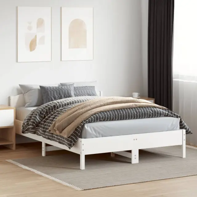 S tem lesenim posteljnim okvirjem lahko uživate v odličnem spancu! To je praktičen in dekorativen dodatek za vaše notranje prostore. Trdna borovina: Trdna borovina je čudovit naravni material. Borovina ima ravne vzorce, grče pa dajejo materialu njegov značilen, rustikalen videz.Letvice iz vezanega lesa: Letvice iz vezanega lesa omogočajo dobro porazdelitev teže in zagotavljajo, da vzmetnica ostane na mestu ob vsakem zasuku in obračanju med spanjem.Odlična opora: Vzglavje lesene postelje zagotavlja odlično oporo hrbtu, ko sedite v postelji in berete ali gledate televizijo. Dobro je vedeti:Vzmetnice niso priložene tej postelji. Ponujamo različno izbiro ležišč. V naši trgovini si lahko ogledate ustrezne vzmetnice.Barva: BelaMaterial: Trdna borovinaMaterial letvic: Vezan lesCelotne dimenzije: 205,5 x 125,5 x 74,5 cm (D x Š x V)Velikost primerne vzmetnice: 120 x 200 cm (Š x D) (vzmetnica ni priložena)Potrebno sestavljanje: Da