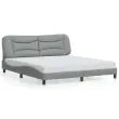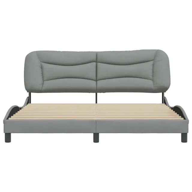 Zagotovite si boljši spanec s tem posteljnim okvirjem z vzglavjem! Je prijeten dodatek za vsako spalnico. Tkanina z dolgo življenjsko dobo: Tkanina je preprostega in čistega videza, hkrati pa je zračna, prijazna do kože in vzdržljiva.Letvice iz vezanega lesa: Letvice iz vezanega lesa omogočajo dobro porazdelitev teže in zagotavljajo, da vzmetnica ostane na mestu ob vsakem zasuku in obračanju med spanjem.Odlična podpora: Vzglavna stranica je napolnjena s PP vlakni za izjemno mehkobo in optimalno udobje ter zagotavlja odlično podporo hrbtu, ko sedite v postelji in berete ali gledate televizijo.Priročna zasnova: Vzglavna stranica ima zadrgo za preprosto namestitev, pripenjala na zadnji strani pa se lahko uporabijo za pritrditev LED lučk.Valovita stranica: Valoviti videz posteljnega okvirja je eleganten in prefinjen. Dekorju v vašem domu dodaja sodoben in eleganten pridih ter tako postane osrednja točka spalnice. Dobro je vedeti:Vzmetnica ni priložena tej postelji. Ponujamo različno izbiro ležišč. V naši trgovini si lahko ogledate ustrezne vzmetnice.Posteljni okvir z vzglavjem:Barva: Svetlo sivaMaterial: Tkanina (100 % poliester), kovina, trdna borovina, vezan lesCelotne dimenzije: 218 x 185 x 74,5 cm (D x Š x V)Velikost primerne vzmetnice: 180 x 200 cm (Š x D) (vzmetnica ni priložena)Oblazinjeno vzglavje:Barva: Svetlo sivaMaterial: Blago (100 % poliester)Material polnila: PP vlaknaDimenzije: 190 x 15 x 48 cm (D x Š x V)Širina primerne vzmetnice: 180 cmPotrebno sestavljanje: DaPaket vsebuje:1 x Posteljni okvir z vzglavjem1 x Oblazinjeno vzglavje