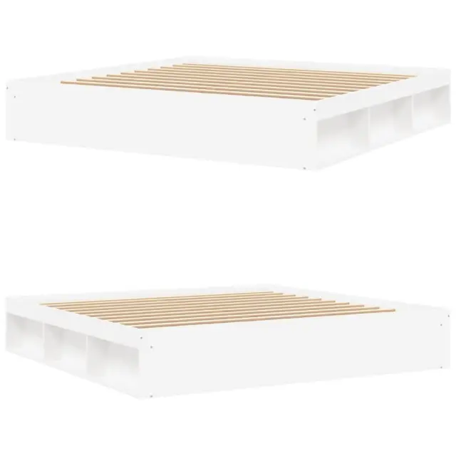Ustvarite moderno spalnico s tem posteljnim okvirjem! To bo praktičen in okrasen dodatek za vaše notranje prostore. Vzdržljiv material: Inženirski les se ponaša z izjemno kakovostjo, gladko površino ter močjo, stabilnostjo in odpornostjo na vlago.Letvice iz vezanega lesa: Letvice iz vezanega lesa omogočajo dobro porazdelitev teže in zagotavljajo, da vzmetnica ostane na mestu ob vsakem zasuku in obračanju med spanjem.Dodaten prostor za shranjevanje: Postelja za goste ima skupno 6 predelkov na obeh straneh postelje za shranjevanje stvari, kot so knjige, lončnice in drugi okraski. Dobro je vedeti:Vzmetnica ni priložena tej postelji. Ponujamo različno izbiro ležišč. V naši trgovini si lahko ogledate ustrezne vzmetnice.Barva: BelaMaterial posteljnega okvirja: Inženirski les, trdna borovinaMaterial letvic: Vezan lesCelotne dimenzije: 203 x 203 x 35 cm (D x Š x V)Primerna velikost vzmetnice (vzmetnica ni vključena): 200 x 200 cm (Š x D)Potrebno sestavljanje: Da