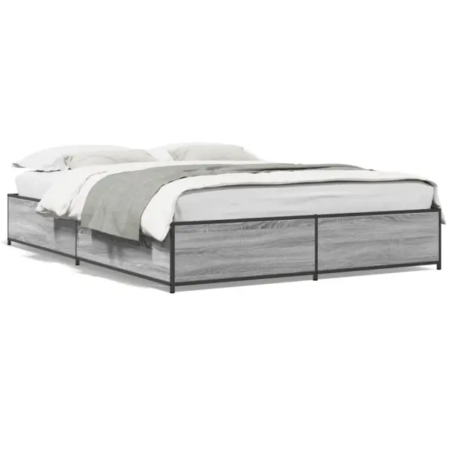Zagotovite si boljši spanec s tem posteljnim okvirjem! Je prijeten dodatek za vsako spalnico. Vzdržljiv material: Inženirski les se ponaša z izjemno kakovostjo, gladko površino ter močjo, stabilnostjo in odpornostjo na vlago. Kovinske noge: Postelja je podprta s čvrstimi kovinskimi nogami, ki zagotavljajo njeno stabilnost, varnost in trdnost. Letvice iz vezanega lesa: Letvice iz vezanega lesa omogočajo dobro porazdelitev teže in zagotavljajo, da vzmetnica ostane na mestu ob vsakem zasuku in obračanju med spanjem. Dobro je vedeti: Vzmetnica ni priložena tej postelji. Ponujamo različno izbiro ležišč. V naši trgovini si lahko ogledate ustrezne vzmetnice.Barva: Siva sonomaMaterial: Inženirski les, jekloCelotne dimenzije: 203 x 153 x 29 cm (D x Š x V)Velikost primerne vzmetnice: 150 x 200 cm (Š x D) (vzmetnica ni priložena)Potrebno sestavljanje: Da