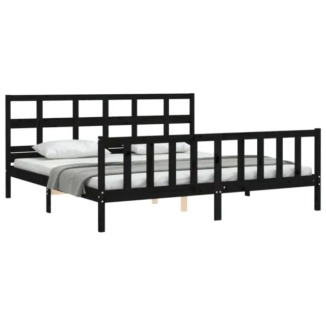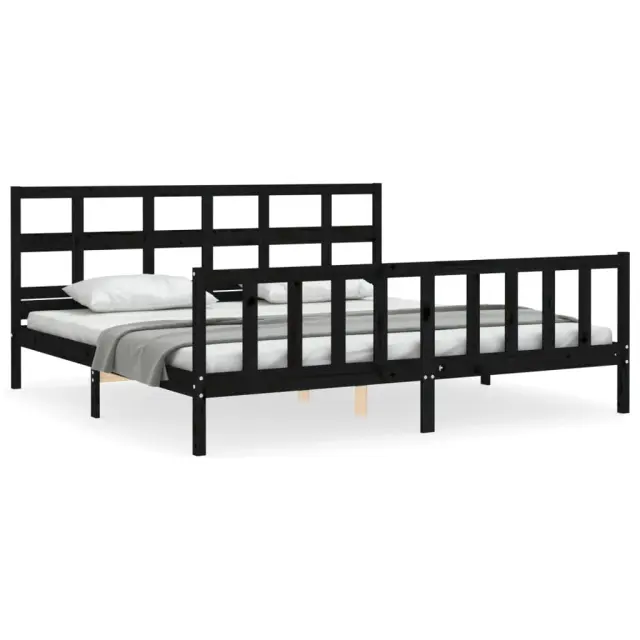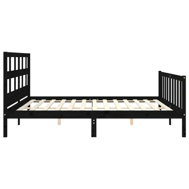 Posteljni okvir - Dvoposteljna postelja - Zakonska postelja z vzglavjem črn 200x200 cm trden les-J5884