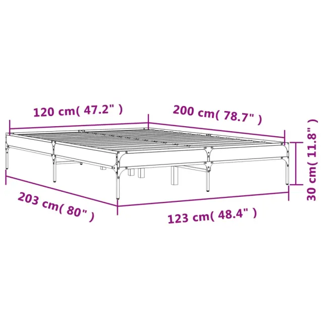 Zagotovite si boljši spanec s tem posteljnim okvirjem! Je prijeten dodatek za vsako spalnico. Vzdržljiv material: Inženirski les se ponaša z izjemno kakovostjo, gladko površino ter močjo, stabilnostjo in odpornostjo na vlago.Kovinske noge: Postelja je podprta s čvrstimi kovinskimi nogami, ki zagotavljajo njeno stabilnost, varnost in trdnost.Letvice iz vezanega lesa: Letvice iz vezanega lesa omogočajo dobro porazdelitev teže in zagotavljajo, da vzmetnica ostane na mestu ob vsakem zasuku in obračanju med spanjem. Dobro je vedeti:Vzmetnica ni priložena tej postelji. Ponujamo različno izbiro ležišč. V naši trgovini si lahko ogledate ustrezne vzmetnice.Barva: ČrnaMaterial posteljnega okvirja: Inženirski les, kovinaMaterial letvic: Vezan lesCelotne dimenzije: 203 x 123 x 30 cm (D x Š x V)Velikost primerne vzmetnice: 120 x 200 cm (Š x D) (vzmetnica ni priložena)Potrebno sestavljanje: Da