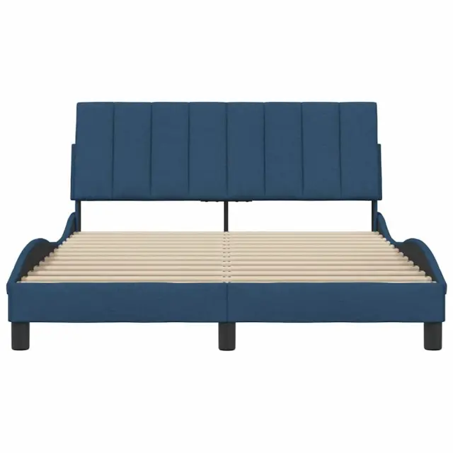 Zagotovite si boljši spanec s tem posteljnim okvirjem! Je prijeten dodatek za vsako spalnico. Mehak in trpežen material: Tkanina iz poliestra ponuja kombinacijo mehkobe, zračnosti in trpežnosti ter vam zagotavlja popolno udobje in prijetnost.Letvice za optimalno podporo: Ta posteljni okvir je opremljen z letvicami, ki zagotavljajo osnovno podporo in zračnost vašega ležišča.Vsestransko vzglavje: Ta posteljni okvir je opremljen z vzglavjem, ki zagotavlja odlično oporo hrbtu, ko sedite v postelji in berete ali gledate televizijo, hkrati pa služi tudi kot dekorativni element.Priročna zasnova: Vzglavna stranica ima zadrgo za preprosto namestitev, pripenjala na zadnji strani pa se lahko uporabijo za pritrditev LED lučk.Valovita stranica: Valoviti videz posteljnega okvirja je eleganten in prefinjen. Dekorju v vašem domu dodaja sodoben in eleganten pridih ter tako postane osrednja točka spalnice. Dobro je vedeti:Vzmetnica ni priložena tej postelji. Ponujamo različno izbiro ležišč. V naši trgovini si lahko ogledate ustrezne vzmetnice.Posteljni okvir:Barva: ModraMaterial: Tkanina (100 % poliester), kovina, vezan les, inženirski lesCelotne dimenzije: 218 x 145 x 74,5 cm (D x Š x V)Velikost primerne vzmetnice: 140 x 200 cm (Š x D) (vzmetnica ni priložena)Oblazinjeno vzglavje:Barva: ModraMaterial: Blago (100 % poliester)Material polnila: PP vlaknaDimenzije: 140 x 3 x 45 cm (D x Š x V)Paket vsebuje:1 x Posteljni okvir1 x Oblazinjeno vzglavje