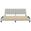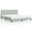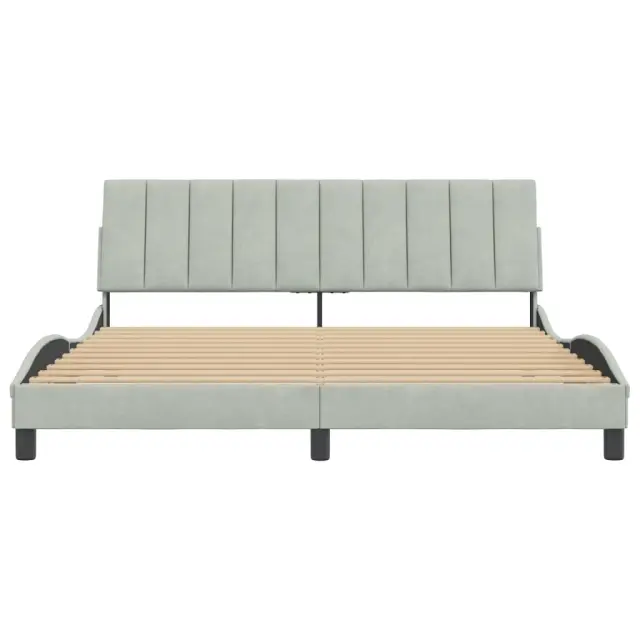 Zagotovite si boljši spanec s tem posteljnim okvirjem z vzglavjem! Je prijeten dodatek za vsako spalnico. Mehak žamet: Žamet je mehka in udobna tkanina, ki je prijetna do kože.Letvice iz vezanega lesa: Letvice iz vezanega lesa omogočajo dobro porazdelitev teže in zagotavljajo, da vzmetnica ostane na mestu ob vsakem zasuku in obračanju med spanjem.Odlična podpora: Vzglavna stranica je napolnjena s peno za izjemno mehkobo in optimalno udobje ter zagotavlja odlično podporo hrbtu, ko sedite v postelji in berete ali gledate televizijo.Priročna zasnova: Vzglavna stranica ima zadrgo za preprosto namestitev, pripenjala na zadnji strani pa se lahko uporabijo za pritrditev LED lučk.Valovita stranica: Valoviti videz posteljnega okvirja je eleganten in prefinjen. Dekorju v vašem domu dodaja sodoben in eleganten pridih ter tako postane osrednja točka spalnice. Dobro je vedeti:Vzmetnica ni priložena tej postelji. Ponujamo različno izbiro ležišč. V naši trgovini si lahko ogledate ustrezne vzmetnice.Posteljni okvir z vzglavjem:Barva: Svetlo sivaMaterial: Žamet (100 % poliester), kovina, trdna borovina, vezan les, inženirski lesCelotne dimenzije: 218 x 185 x 74,5 cm (D x Š x V)Velikost primerne vzmetnice: 180 x 200 cm (Š x D) (vzmetnica ni priložena)Oblazinjeno vzglavje:Barva: Svetlo sivaMaterial: Žamet (100 % poliester)Material polnila: PenaDimenzije: 180 x 3 x 45 cm (D x Š x V)Širina primerne vzmetnice: 180 cmPotrebno sestavljanje: DaPaket vsebuje:1 x Posteljni okvir z vzglavjem1 x Oblazinjeno vzglavje