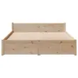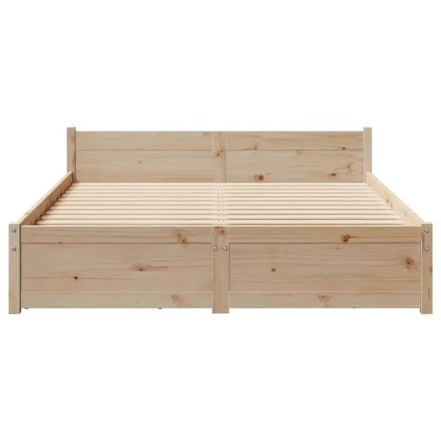 Zagotovite si boljši spanec s tem posteljnim okvirjem! Je prijeten dodatek za vsako spalnico. Stabilen in dolgotrajen okvir: Trdna borovina je znana po svoji trdnosti in trajnosti. Ravni vzorci in značilni vozli prispevajo k njenemu rustikalnemu čaru.Podnožje z letvami za optimalno podporo: Za podporo in zračnost ležišča je posteljni okvir opremljen z letvenim dnom.Vsestransko vzglavje: Ta posteljni okvir je opremljen z vzglavjem, ki zagotavlja odlično oporo hrbtu, ko sedite v postelji in berete ali gledate televizijo, hkrati pa služi tudi kot dekorativni element.Popolnoma izkoriščen prostor: Ta posteljni okvir ima spodaj dva predala, ki omogočata shranjevanje predmetov, kot so dodatna posteljnina, sezonska oblačila in igrače.Preprosto manevriranje: Ta predal za shranjevanje pod posteljo ima štiri kolesa, ki zagotavljajo gladko in lahkotno manevriranje pri drsenju pod posteljo in izpod nje. Dobro je vedeti:Vzmetnica ni priložena tej postelji. Ponujamo različno izbiro ležišč. V naši trgovini si lahko ogledate ustrezne vzmetnice.Material: Trdna borovina (neobdelana)Potrebno sestavljanje: DaPostelja:Dimenzije: 205,5 x 155,5 x 51 cm (D x Š x V)Višina spalnega prostora, merjena od tal: 31 cmVišina prostora pod posteljo: 21 cmVelikost primerne vzmetnice: 150 x 200 cm (Š x D) (vzmetnica ni priložena)Največja nosilnost (z ležiščem): 180 kgZ letvenim podomPredal:Zunanje dimenzije: 95 x 55 x 16 cm (Š x G x V)Notranje dimenzije: 86,5 x 52,5 x 10 cm (Š x G x V)Maks. nosilnost (vsaka): 20 kgS štirimi kolesi Paket vsebuje:1 x Posteljni okvir z letvenim podnožjem2 x Predal