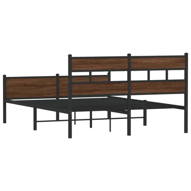 Če iščete trpežen posteljni okvir za svojo spalnico, je ta klasični posteljni okvir z elegantnim in brezčasnim dizajnom popolna izbira!Robustna kovinska konstrukcija: Okvir postelje je izdelan iz jekla. Jeklo je izjemno trd in močan material, ki zagotavlja izjemno trdnost in stabilnost.Kovinske letvice in noge: Kovinski posteljni okvir je opremljen s kovinskimi letvami in sredinskimi nogami, ki ležišču nudijo nujno potrebno oporo in zračnost.Dodaten prostor za shranjevanje: Za vaše udobje ima postelja za goste pod seboj tudi dodaten prostor, da vaše škatle za shranjevanje ne bodo vidne.Funkcionalno vzglavje in podnožje: Vzglavje in podnožje posteljnega dna ohranjata ležišče na mestu. Poleg tega vzglavje zagotavlja odlično oporo hrbtu, ko sedite v postelji in berete ali gledate televizijo.Dobro je vedeti:Vzmetnica ni priložena tej postelji. Ponujamo različno izbiro ležišč. V naši trgovini si lahko ogledate ustrezne vzmetnice.Za čim lažjo montažo je vsakemu izdelku priložen priročnik.Barva: Rjav hrastMaterial: Jeklo, inženirski lesCelotne dimenzije: 196 x 142 x 91,5 cm (D x Š x V)Višina prostora pod posteljo: 28 cmVelikost primerne vzmetnice: 137 x 190 cm (Š x D) (vzmetnica ni priložena)Potrebno sestavljanje: Da