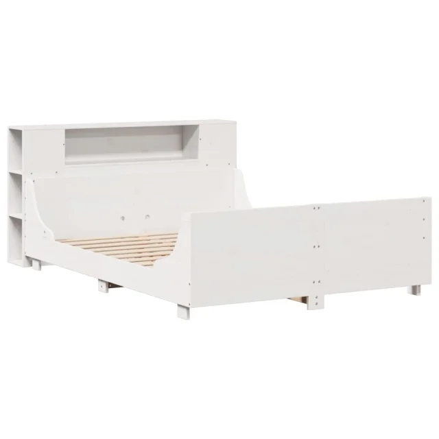 Posteljni Okvir - Dvoposteljna postelja brez vzmetnice bel 120x190 cm trdna borovina