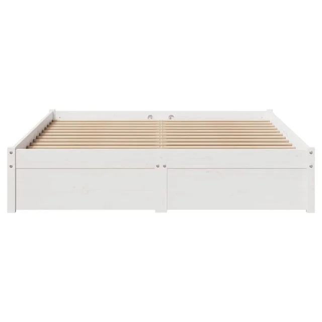 Posteljni Okvir - Dvoposteljna postelja brez vzmetnice bel 120x200 cm trdna borovina