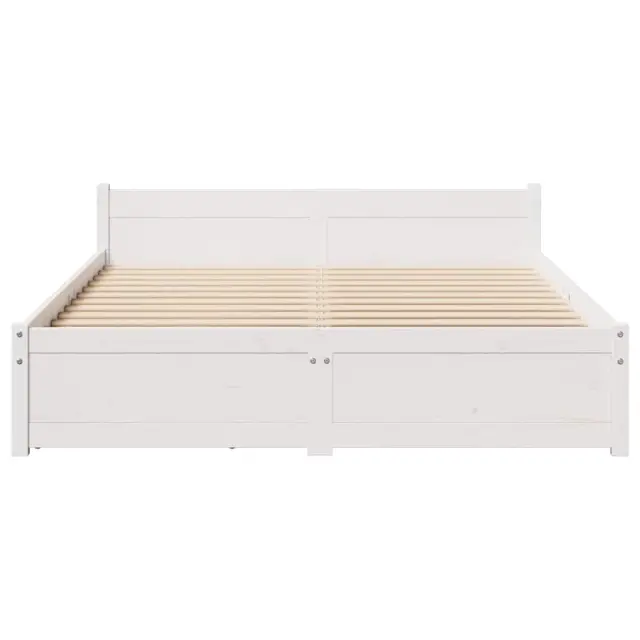 Posteljni Okvir - Dvoposteljna postelja brez vzmetnice bel 135x190 cm trdna borovina