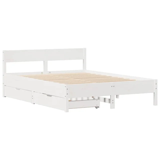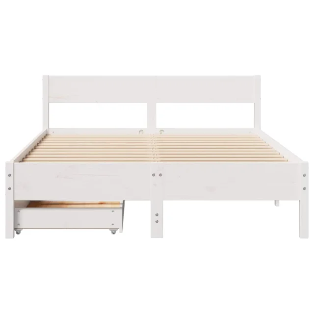 Posteljni Okvir - Dvoposteljna postelja brez vzmetnice bel 135x190 cm trdna borovina