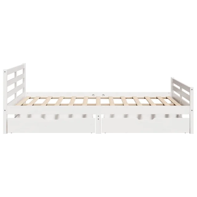 Posteljni Okvir - Dvoposteljna postelja brez vzmetnice bel 135x190 cm trdna borovina