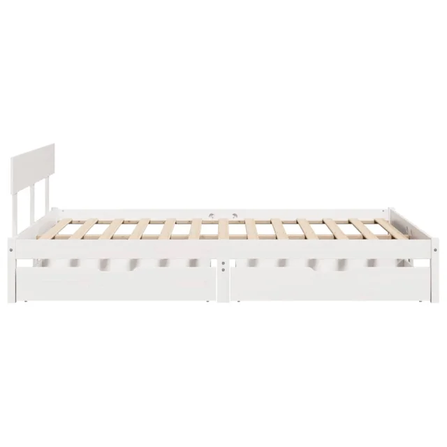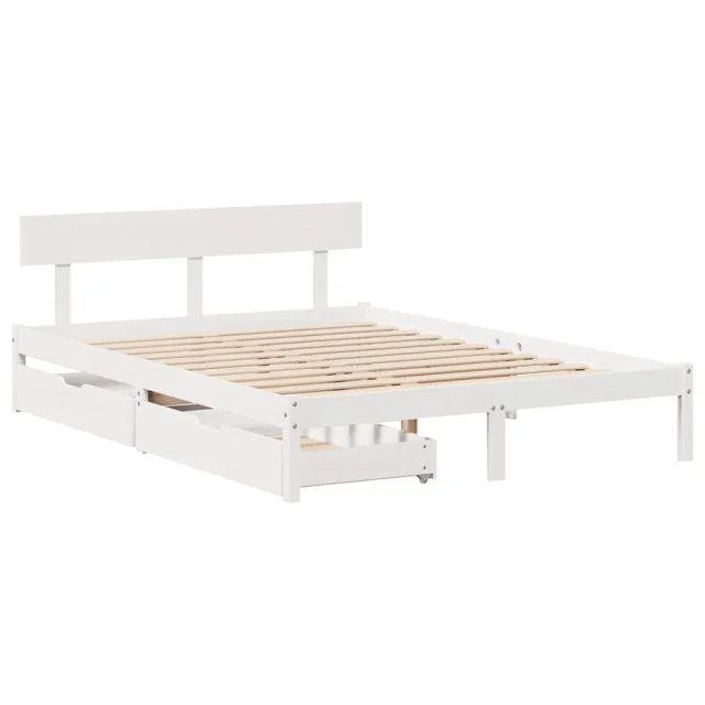 Posteljni Okvir - Dvoposteljna postelja brez vzmetnice bel 140x190 cm trdna borovina
