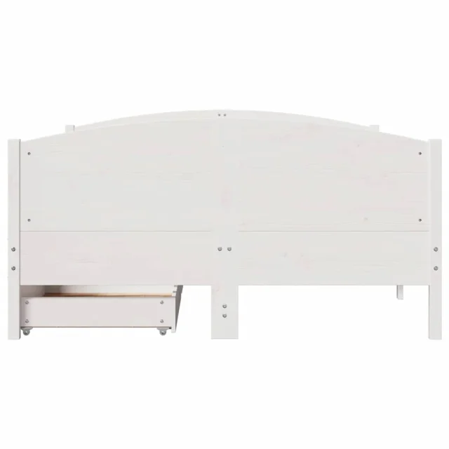 Posteljni Okvir - Dvoposteljna postelja brez vzmetnice bel 140x200 cm trdna borovina