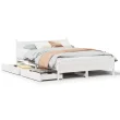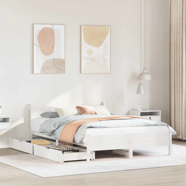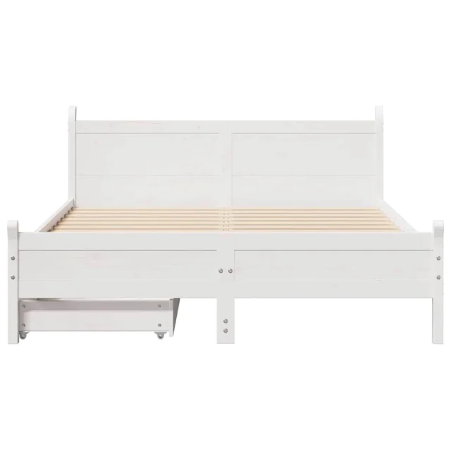 Posteljni Okvir - Dvoposteljna postelja brez vzmetnice bel 150x200 cm trdna borovina