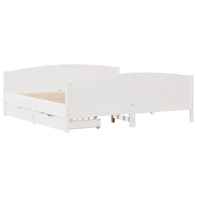 Posteljni Okvir - Dvoposteljna postelja brez vzmetnice bel 160x200 cm trdna borovina