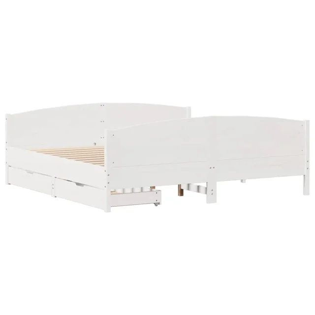Posteljni Okvir - Dvoposteljna postelja brez vzmetnice bel 200x200 cm trdna borovina