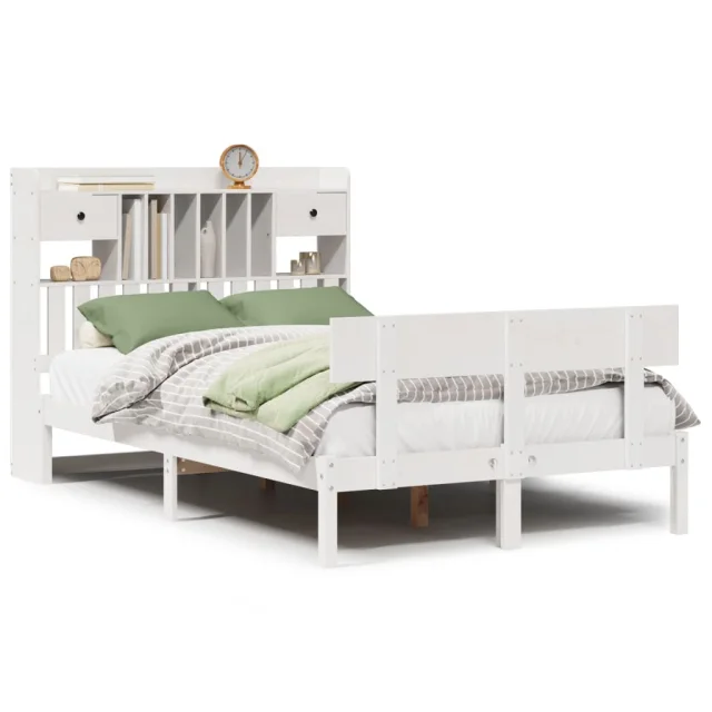 Posteljni Okvir - Dvoposteljna postelja brez vzmetnice bela 135x190 cm trdna borovina