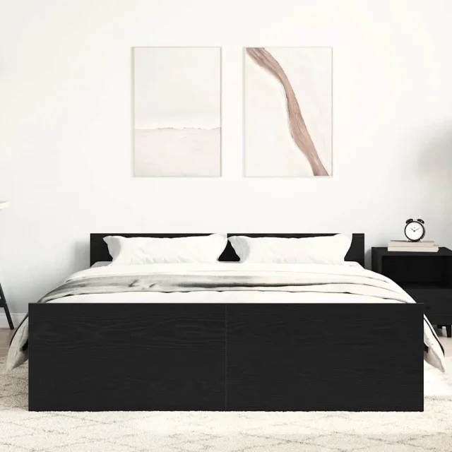 Posteljni Okvir - Dvoposteljna postelja brez vzmetnice črni hrast 135x190 cm inž. les