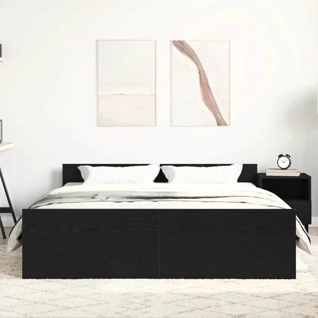 Posteljni Okvir - Dvoposteljna postelja brez vzmetnice črni hrast 160x200 cm inž. les
