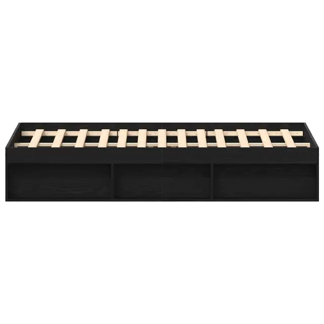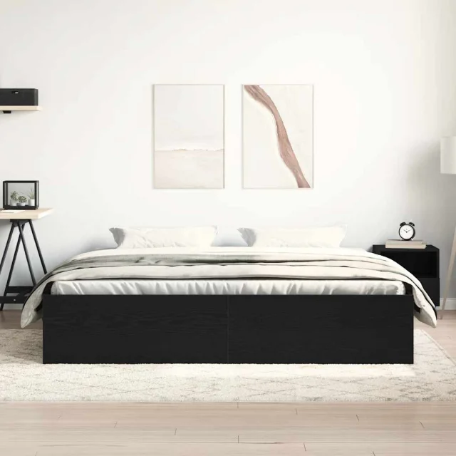 Posteljni Okvir - Dvoposteljna postelja brez vzmetnice črni hrast 200x200 cm inž. les