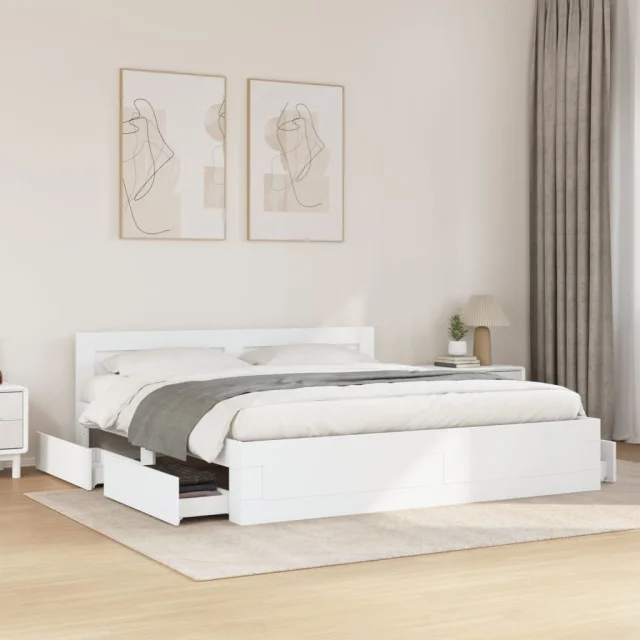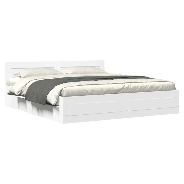 Posteljni Okvir - Dvoposteljna postelja z vzglavjem brez vzmetnice bel 180x200 cm