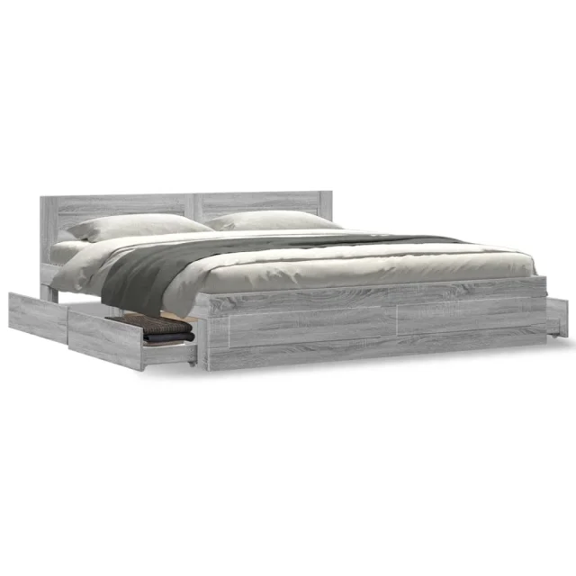 Posteljni Okvir - Dvoposteljna postelja z vzglavjem siva sonoma 180x200 cm inž. les