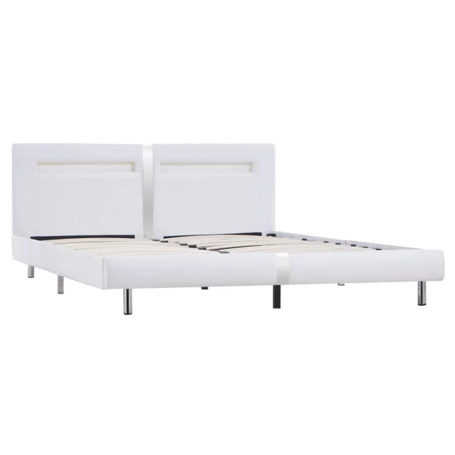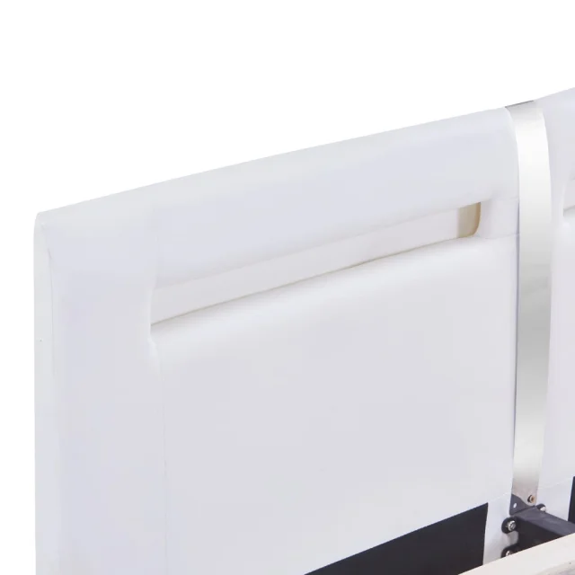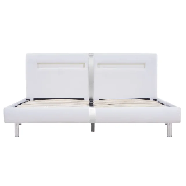 Ta posteljni okvir odlikuje preprost in eleganten dizajn, dekorju v vaši spalnici pa bo dodal pridih elegantnega šarma. Izdelan je iz lesa in jekla, zato je ta posteljni okvir precej močan in trpežen. Noge iz trdnega lesa postelji dodajajo dodatno stabilnost. Poleg tega je postelja oblečena v trpežno umetno usnje, zato je vabljiva in preprosta za čiščenje. Poleg tega lahko moč, svetlobo in različne utripajoče barve LED svetlobnega traku priročno nastavite s priloženim popolnoma funkcionalnim daljinskim upravljalnikom s 24 tipkami, da boste ustvarili osupljivo svetlobno predstavo. Ta posteljni okvir je primeren za vzmetnico velikosti 180 x 200 cm.