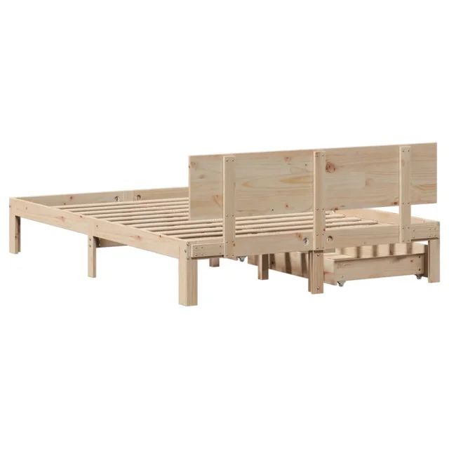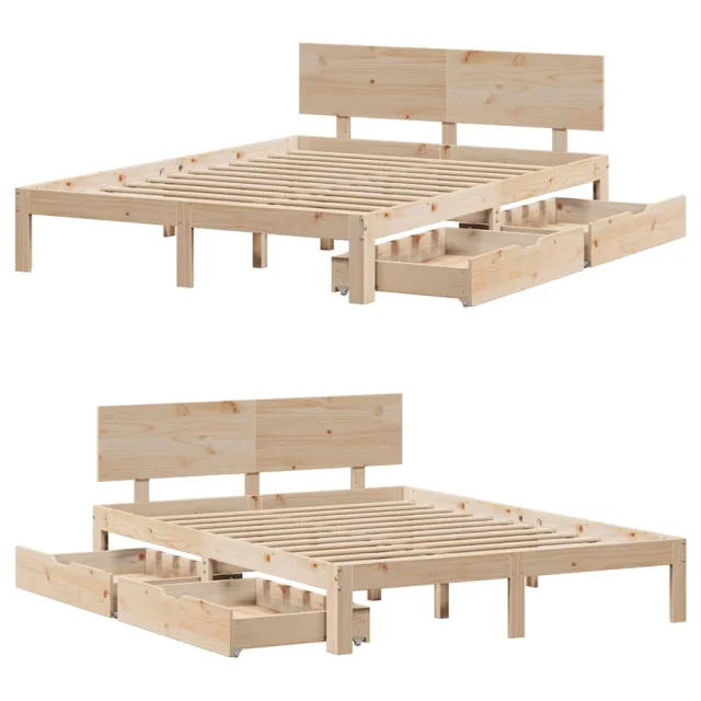 Posteljni okvir - Dvoposteljna postelja - Zakonska postelja s predali 150x200 cm trdna borovina