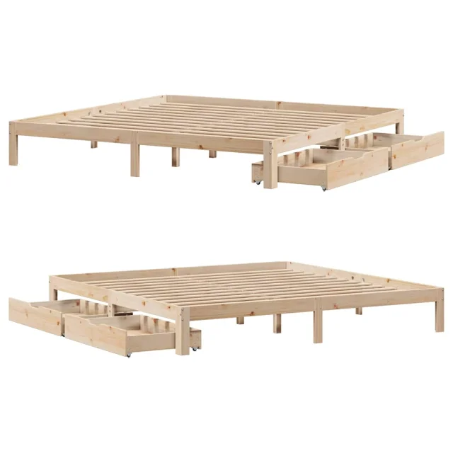 Posteljni okvir - Dvoposteljna postelja - Zakonska postelja s predali 180x200 cm trdna borovina