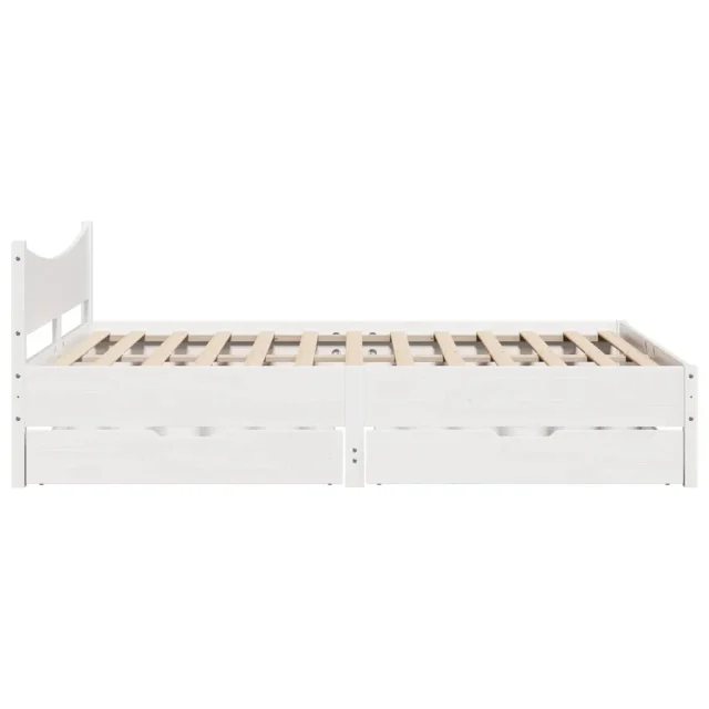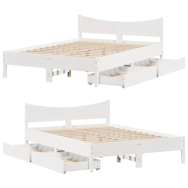 Posteljni okvir - Dvoposteljna postelja - Zakonska postelja s predali bel 120x190 cm trdna borovina