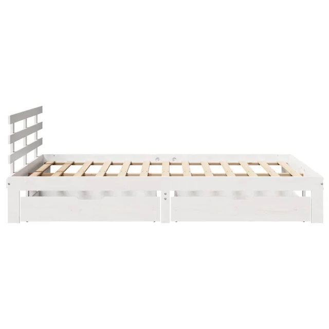 Posteljni okvir - Dvoposteljna postelja - Zakonska postelja s predali bel 120x200 cm trdna borovina