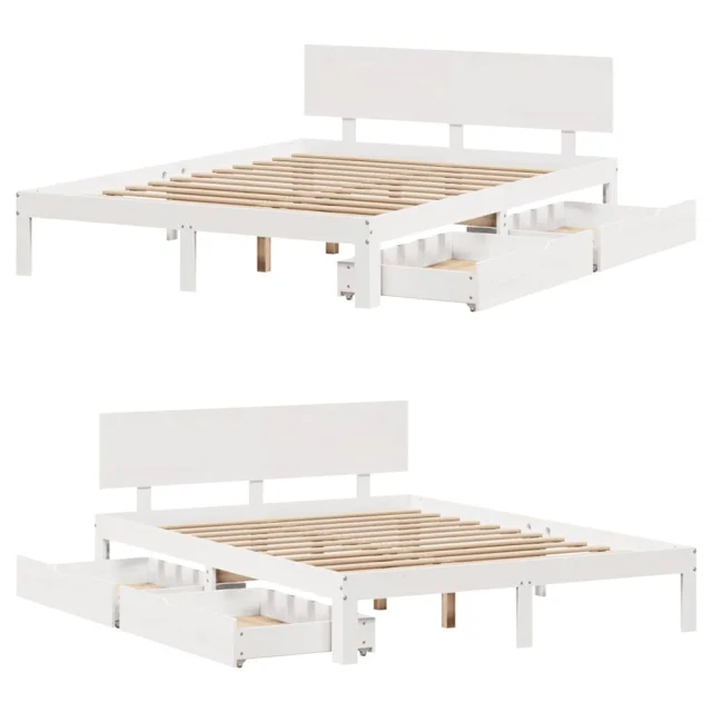 Posteljni okvir - Dvoposteljna postelja - Zakonska postelja s predali bel 120x200 cm trdna borovina