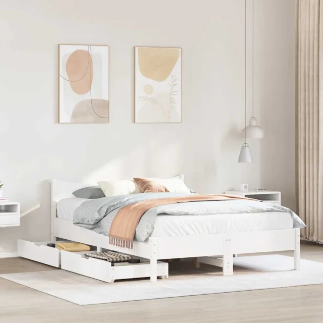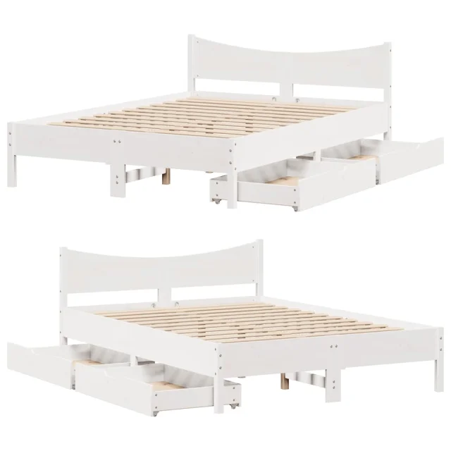 Posteljni okvir - Dvoposteljna postelja - Zakonska postelja s predali bel 120x200 cm trdna borovina
