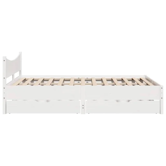 Posteljni okvir - Dvoposteljna postelja - Zakonska postelja s predali bel 135x190 cm trdna borovina