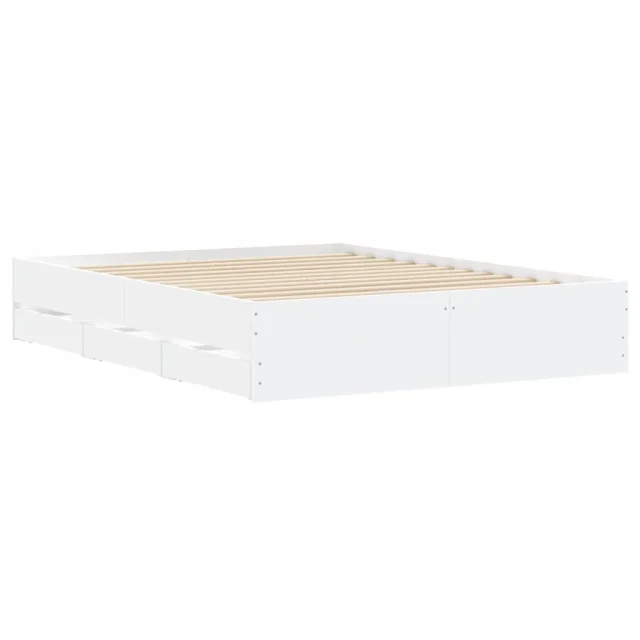 Posteljni okvir - Dvoposteljna postelja - Zakonska postelja s predali bel 140x190 cm inženirski les
