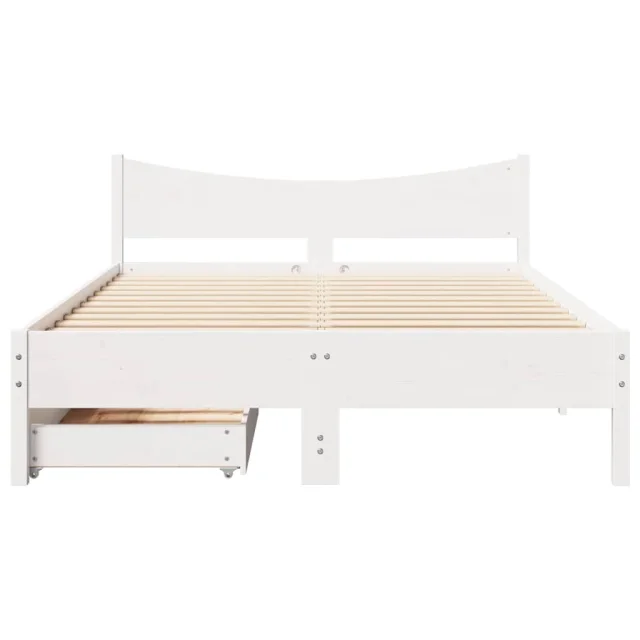 Posteljni okvir - Dvoposteljna postelja - Zakonska postelja s predali bel 150x200 cm trdna borovina