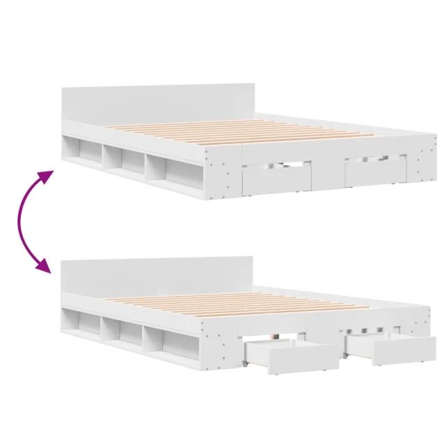 Posteljni okvir - Dvoposteljna postelja - Zakonska postelja s predali bel 160x200 cm inženirski les