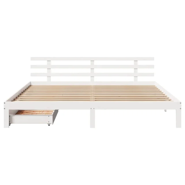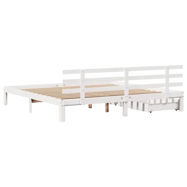Posteljni okvir - Dvoposteljna postelja - Zakonska postelja s predali bel 180x200 cm trdna borovina