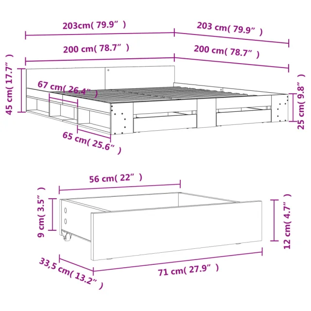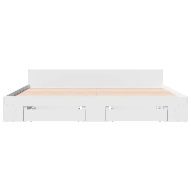 Posteljni okvir - Dvoposteljna postelja - Zakonska postelja s predali bel 200x200 cm inženirski les