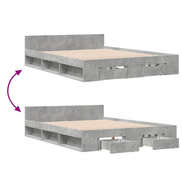 Posteljni okvir - Dvoposteljna postelja - Zakonska postelja s predali betonsko siv 120x190cm inženirski les