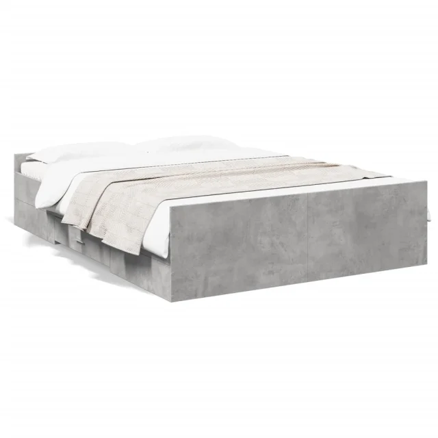 Posteljni okvir - Dvoposteljna postelja - Zakonska postelja s predali betonsko siv 120x200cm inženirski les
