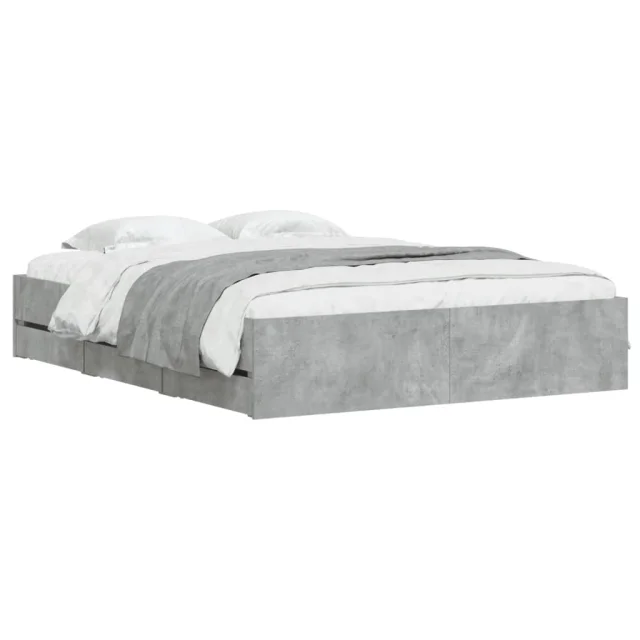 Posteljni okvir - Dvoposteljna postelja - Zakonska postelja s predali betonsko siv 140x200cm inženirski les