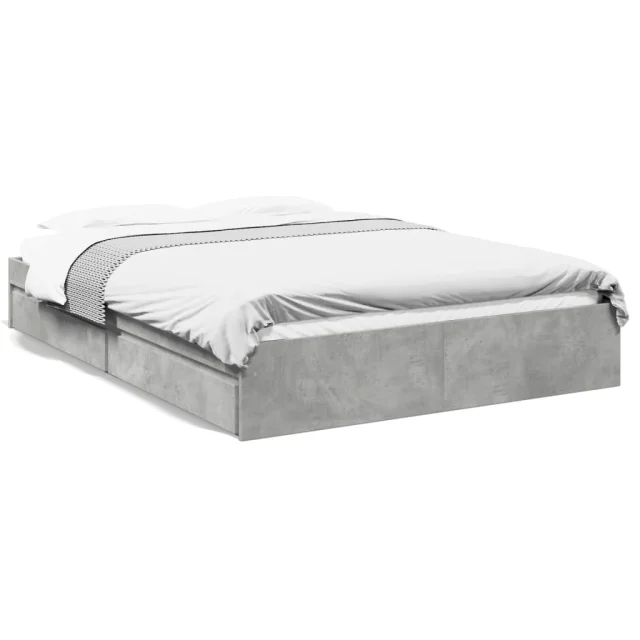 Posteljni okvir - Dvoposteljna postelja - Zakonska postelja s predali betonsko siv 150x200cm inženirski les