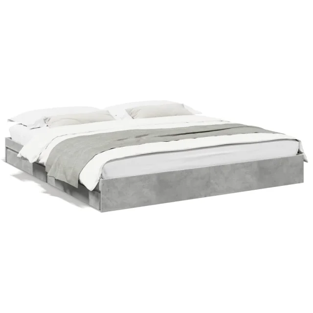 Posteljni okvir - Dvoposteljna postelja - Zakonska postelja s predali betonsko siv 180x200cm inženirski les