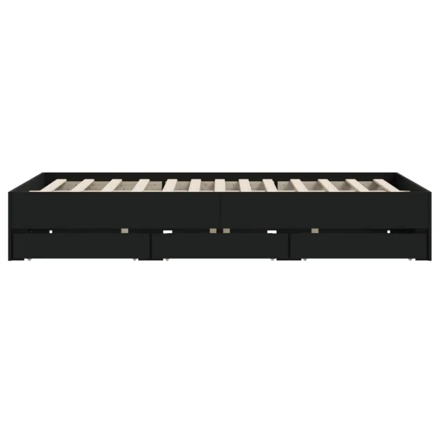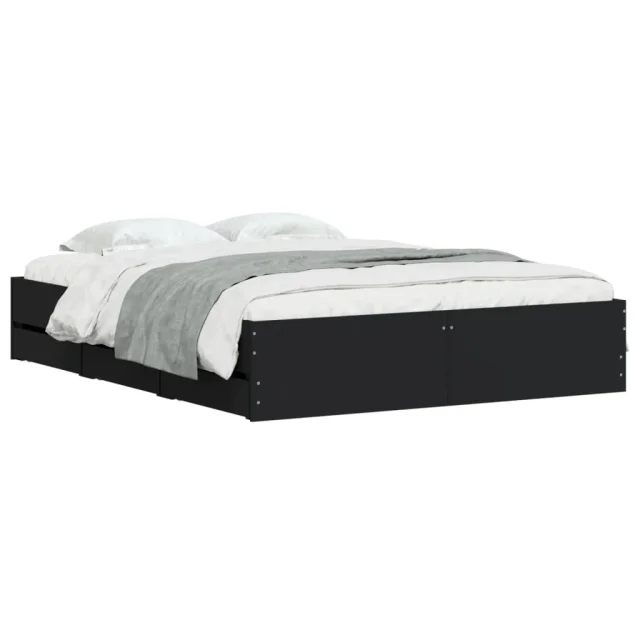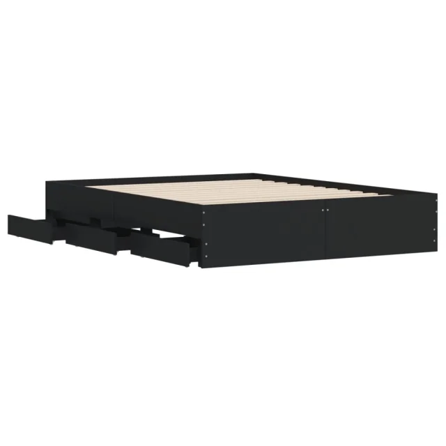 Posteljni okvir - Dvoposteljna postelja - Zakonska postelja s predali črn 140x200 cm inženirski les